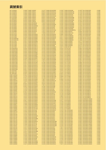 AG-3754003AG-3754005AG-3754010AG-3754025AG-3754050AG-3754100AG-3965000AG-5370823AG-5370824AG-5370825AG-5370901AG-5370902AG-5370903AG-5370904AG-5370905AG-5370906AG-5371101AG-5371525AG-5371950AG-5371990AG-5375000TKAG-5375001TKAG-5377025AG-5377028AG-5377038AG-5377040AG-5377045AG-5402002PAG-5402010PAG-5402020PAG-5402100PAG-5402200PAG-5402901PAG-5402910PAG-5402950PAG-5403101PAG-5403102PAG-5403120PAG-5403130PAG-5403201PAG-5403202PAG-5403220PAG-5403230PAG-5497050AG-5497150AG-5497600AHW-120026AHW-120052AHW-120056AHW-120077AHW-120078AHW-120316AHW-120480AHW-120481AHW-120499AHW-120539AHW-120540AHW-120541AHW-120575AHW-120576AHW-120577AHW-120578AHW-120579AHW-120592AHW-120595AHW-120598AHW-120656AHW-120657AHW-120684AHW-120685AHW-120686AHW-120687AHW-120710AHW-120727AHW-120728AHW-120729AHW-120730AHW-120731AHW-120732AHW-120733AHW-120734AHW-120735AHW-120791AHW-120792AHW-120793AHW-120813AHW-120817AHW-120818AHW-120836AHW-120880AHW-120882AHW-120889AHW-120890AHW-120891AHW-120892AHW-120908AHW-120909AHW-120911AHW-120912AHW-120913AHW-120914AHW-120915AHW-120916AHW-120917AHW-120918AHW-HS1002AAHW-HS1002CAHW-HS10044HAHW-HS10320AHW-HS10321AHW-HS10322AHW-HS10323AHW-HS1041AHW-HS120003AHW-HS120004AHW-HS120005AHW-HS120006AHW-HS120007AHW-HS120008AHW-HS120070AHW-HS120071AHW-HS120072AHW-HS120073AHW-HS120074AHW-HS120075AHW-HS120076AHW-HS120085AHW-HS120086AHW-HS120087AHW-HS120088AHW-HS120091AHW-HS120177AHW-HS120178AHW-HS120195AHW-HS120222AHW-HS120223AHW-HS120224AHW-HS120225AHW-HS120226AHW-HS120227AHW-HS120312AHW-HS120313AHW-HS120314AHW-HS120315AHW-HS120392AHW-HS120506AHW-HS120507AHW-HS120556AHW-HS120557AHW-HS120599AHW-HS120626AHW-HS120637AHW-HS120638AHW-HS120639AHW-HS120641AHW-HS120642AHW-HS120644AHW-HS120645AHW-HS120648AHW-HS120649AHW-HS120650AHW-HS120652AHW-HS120667AHW-HS120668AHW-HS120690AHW-HS120722AHW-HS120758AHW-HS1419AAHW-HS1419BAHW-HS1419CAHW-HS1420AAHW-HS1420AAAHW-HS1420BAHW-HS1420BBAHW-HS1420CAHW-HS1420CCAHW-HS1421AAHW-HS1421BAHW-HS1421CAHW-HS1423AAHW-HS1423AAAHW-HS1423BAHW-HS1423BBAHW-HS1423CAHW-HS1423CCAHW-HS1424AAHW-HS1424AAAHW-HS1424BAHW-HS1424CAHW-HS14250AAHW-HS14250BAHW-HS14250CAHW-HS14250DAHW-HS14251AAHW-HS14251BAHW-HS14251CAHW-HS14251DAHW-HS1425AAHW-HS1425AAAHW-HS1425BAHW-HS1425CAHW-HS1426AAHW-HS1426AAAHW-HS1426BAHW-HS1426CAHW-HS1427AAHW-HS1427AAAHW-HS1427BAHW-HS1427CAHW-HS15092AAHW-HS15981AAHW-HS15981BAHW-HS15981CAHW-HS15982AHW-HS15983AAHW-HS15983BAHW-HS15983GAHW-HS15986AHW-HS15988HAHW-HS15989AAHW-HS15989BAHW-HS15989CAHW-HS15989EAHW-HS15991AAHW-HS15991BAHW-HS15991CAHW-HS15994AAHW-HS15994BAHW-HS15994CAHW-HS15994DAHW-HS15994EAHW-HS15994FAHW-HS15994GAHW-HS15996AAHW-HS15996BAHW-HS15996CAHW-HS15998CAHW-HS20162AAHW-HS20613EAHW-HS20615MAHW-HS206204AHW-HS20623AHW-HS20821AAHW-HS2132AAHW-HS2134AAHW-HS2165AAHW-HS2165BAHW-HS2165CAHW-HS2166AHW-HS23051AHW-HS23053AAHW-HS23072AHW-HS23108AHW-HS23210AHW-HS23215AHW-HS23224AHW-HS23229BAHW-HS23243AAHW-HS232461AHW-HS23271AAHW-HS23300DAHW-HS23325AAHW-HS23381BAHW-HS23381CAHW-HS23401AHW-HS23402AHW-HS23403AHW-HS23404AHW-HS23411AHW-HS23412AHW-HS2344AAHW-HS234525BAHW-HS234525CAHW-HS234525DAHW-HS234525RAHW-HS23457AHW-HS23458AHW-HS2345BAHW-HS2345CAHW-HS2345DAHW-HS2345EAHW-HS2345FAHW-HS23461BAHW-HS23461CAHW-HS23461DAHW-HS234631AHW-HS234634AHW-HS23491AAHW-HS24306AHW-HS24311BAHW-HS24312BAHW-HS24318AHW-HS24319AHW-HS24320BAHW-HS24320PAHW-HS24330AAHW-HS2538AAHW-HS29040AAHW-HS29040BAHW-HS29041AAHW-HS29050AAHW-HS4284AAHW-HS5000RFFILAHW-HS8151AHW-HS8171AAHW-HS8181AHW-HS8882AAHW-HS8882BAHW-HS8882CAHW-HS8882DAHW-HS9902AHW-HS9903AHW-HS9904AHW-HS9930AHW-RF3KAI-011230AI-013230AI-021230AI-022230AI-024230AI-025000AI-025100AI-031230AI-032230AI-033230AI-111425AI-112425AI-113510AI-121025AI-122025AI-123010AI-131025AI-132025AI-133025AI-211010AI-211040AI-211350AI-221010AI-221040AI-221350AI-231010AI-231040AI-231350AI-251091AI-252019AI-252024AI-320200AI-320300AI-320500AI-321100AI-321200AI-321300AI-412000AI-413000AI-414000AI-436000AI-436300AI-437000AI-438000AIL-01301005AIL-01301010AIL-01301020AIL-01301025AIL-01301050AIL-01301051AIL-01301100AIL-01301101AIL-01301200AIL-01301250AIL-01301500AIL-01301901AIL-01301902AIL-01313001AIL-01313002AIL-01315001AIL-01315002AIL-01401005AIL-01401010AIL-01401020AIL-01401025AIL-01401051AIL-01401101AIL-01401200AIL-01401250AIL-01401500AIL-01401901AIL-01401902AIL-01501005AIL-01501010AIL-01501025AIL-01501050AIL-01501100AIL-01501250AIL-01501500AIL-01501901AIL-01501902AIL-01601010AIL-01601025AIL-01601050AIL-01601100AIL-01601250AIL-01601500AIL-01601901AIL-01701010AIL-01701025AIL-01701050AIL-01801010AIL-01801025AIL-01801050AIL-01901010AIL-01901025AIL-01901050AIL-01905010AIL-01905025AIL-01905050AIL-02007010AIL-02007025AIL-02008001AIL-02101001AIL-02101002AIL-02101005AIL-02101010AIL-02101020AIL-02101025AIL-02105001AIL-02105002AIL-02105003AIL-02105004AIL-02105005AIL-02105010AIL-02105015AIL-02105020AIL-02105025AIL-02105050AIL-05103001AIL-05103002AIL-05103003AIL-05103004AIL-05103005AIL-05103006AIL-05103007AIL-05108010AIL-05108012AIL-05108014AIL-05108019AIL-05108024AIL-05108029AK1003S-00008AK13500-00003AK13500-00004AK13500-00005AK13500-00006AK14000-00010AK14000-00020AK14000-00100AK14000-00150AK14000-00400AK14000-00600AK14000-00800AK14000-01000AK14000-01500AK14000-02000AK14000-04000AK14005-00250AK14005-00400AK14005-00600AK14005-01000AK14005-02000AK14005-04000AK14020-00100AK14020-00200AK14020-00300AK14020-00400AK14020-00600AK14020-01000AK14030-00100AK14030-00200AK14030-00300AK14030-00400AK14030-00600貨號索引A-040A-040A-040A-040A-040A-040D-009D-035D-035D-035D-035D-035D-035D-035D-035D-035D-035D-035D-035D-035D-037D-037D-037D-037D-037D-037D-037D-016D-016D-016D-016D-016D-016D-016D-016D-017D-017D-017D-017D-017D-017D-017D-017D-032D-032D-037D-022A-123D-022A-123A-123A-077D-022D-022D-022A-124A-124A-124D-022A-076A-076A-076A-076A-076E-017E-078A-160A-160A-122A-122A-122A-122A-159A-124A-124A-124A-160A-160A-160A-160A-160A-160A-137A-137A-137A-137A-121A-121A-159A-159A-159A-124A-159A-159A-159A-127A-127B-051B-051B-051B-051B-051B-051B-051B-051F-023F-023F-022F-022F-022F-022F-022F-009A-139A-139A-139A-139A-139A-139A-1