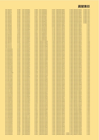 ATS-582255ATS-583211ATS-583216ATS-583217ATS-583250ATS-583252ATS-583253ATS-583255ATS-583260ATS-583265ATS-583266ATS-583270ATS-583280ATS-583290ATS-583300ATS-610040ATS-610060ATS-610080ATS-611030ATS-683240ATS-683250ATS-683260ATS-882080ATS-882090ATS-882200ATS-882222ATS-922121ATS-922122ATS-922123ATS-922124AU-00064000AU-00064002AU-00064003AU-04352050AU-05251000AU-05301000AU-06001014AU-06001016AU-06003002AU-06003003AU-06003004AU-50001500AU-50004016AU-50051000AU-50051500AU-50053000AU-52010030AU-52011000AU-52011000CAU-53070102AU-53070202AU-53070205AU-53070210AU-53071085AU-53072085AU-53150050AU-53150100AU-53150200AU-53160055AU-53160085AU-53161055AU-53172055AU-53172085AU-53210300AU-53221300AU-53230200AU-53232010AU-53260001AU-53260002AU-53302060AU-53302100AU-53302200AU-53540050AU-53540100AU-53540200AU-53544100AU-53545050AU-53545100AU-53545200AU-53550280AU-53550300AU-53653000AU-53654000AU-53781001AU-53781003AU-53781005AU-53781007AU-53781009AU-53781011AU-53781012AU-53781013AU-53781015AU-53781019AU-53781020AU-53781031AU-53781032AU-53782001AU-53782003AU-53782005AU-53782007AU-53782009AU-53782011AU-53782012AU-53782013AU-53782015AU-53782019AU-53782020AU-53783001AU-53783003AU-53783005AU-53783007AU-53783009AU-53783011AU-53783012AU-53783013AU-53783015AU-53783019AU-53783020AU-53784005AU-53784007AU-53784009AU-53784011AU-53784013AU-53784015AU-53784017AU-53784019AU-53784045AU-53784047AU-53784049AU-53784051AU-53784053AU-53784055AU-53784057AU-53784059AU-53784085AU-53784087AU-53784089AU-53784091AU-53784093AU-53784095AU-53784097AU-53784099AU-53785002AU-53785003AU-53785004AU-53785006AU-53785007AU-53785008AU-53785010AU-53785011AU-53785012AU-53785014AU-53785015AU-53785016AU-53785018AU-53785019AU-53785020AU-53786002AU-53786003AU-53786004AU-53786006AU-53786007AU-53786008AU-53791001AU-53791003AU-53791005AU-53791007AU-53791009AU-53791011AU-53791012AU-53791021AU-53791022AU-53791023AU-53791024AU-53791025AU-53791040AU-53791041AU-53931120AU-53931130AU-53932240AU-53932250AU-53933320AU-53933330AU-53934420AU-53934430AU-53934440AU-53934450AU-53934460AU-53934470AU-53935500AU-53935510AU-53935522AU-53935531AU-53935540AU-53935550AU-53935560AU-53935570AU-56010401AU-56010501AU-56010801AU-56021000AU-56030015AU-56031000AU-56034000AU-56051000AU-56101030AU-86190105AU-86190155AU-86190205AU-87202005AU-96400410AU-96400415AU-96400421AU-96402040AU-96402050AU-96402060AW1001-00042AW1001-00047AW1001-00055AW1001-00070AW1001-00090AW1001-00110AW1001-00125AW1001-00150AW1001-00185AW1001-00240AW1001-00320AW1001-00329AW1001-00385AW1001-00400AW1001-00500AW1001-00917AW1002-00042AW1002-00055AW1002-00070AW1002-00090AW1002-00110AW1002-00125AW1002-00150AW1002-00185AW1002-00240AW1002-00270AW1002-00320AW1002-00917AW1002-00931AW1003-00055AW1003-00070AW1003-00090AW1003-00110AW1003-00125AW1003-00150AW1003-00185AW1003-00240AW1003-00320AW1003-00323AW1003-00917AW1004-00042AW1004-00047AW1004-00055AW1004-00070AW1004-00090AW1004-00110AW1004-00125AW1004-00150AW1004-00185AW1004-00240AW1004-00270AW1004-00320AW1004-00400AW1004-00917AW1005-00042AW1005-00055AW1005-00070AW1005-00090AW1005-00110AW1005-00125AW1005-00150AW1005-00185AW1005-00240AW1005-00320AW1006-00042AW1006-00070AW1006-00090AW1006-00110AW1006-00125AW1006-00150AW1006-00185AW1440-00042AW1440-00047AW1440-00055AW1440-00070AW1440-00090AW1440-00110AW1440-00125AW1440-00150AW1440-00185AW1440-00240AW1440-00329AW1441-00042AW1441-00047AW1441-00055AW1441-00070AW1441-00090AW1441-00110AW1441-00125AW1441-00150AW1441-00185AW1441-00240AW1441-00320AW1442-00042AW1442-00055AW1442-00070AW1442-00090AW1442-00110AW1442-00125AW1442-00150AW1442-00185AW1442-00240AW1442-00320AW1443-00090AW1443-00110AW1443-00125AW1443-00150AW1443-00185AW1444-00070AW1444-00090AW1444-00110AW1444-00125AW1444-00150AW1444-00185AW1450-00042AW1450-00055AW1450-00070AW1450-00090AW1450-00110AW1450-00125AW1450-00150AW1450-00185AW1450-00240AW1450-00320AW1450-00917AW1452-00090AW1452-00110AW1452-00125AW1452-00150AW1452-00240AW1454-00055AW1454-00070AW1454-00090AW1454-00110AW1454-00125AW1454-00150AW1454-00185AW1454-00240AW1454-00320AW1454-00917AW1540-00042AW1540-00055AW1540-00090AW1540-00110AW1540-00125AW1540-00150AW1540-00185AW1540-00240AW1541-00042AW1541-00055AW1541-00070AW1541-00090AW1541-00110AW1541-00125AW1541-00150AW1541-00185AW1541-00240AW1541-00320AW1541-00400AW1541-00917AW1542-00070AW1542-00090AW1542-00110AW1542-00125AW1542-00150AW1542-00185AW1820-00021AW1820-00024AW1820-00025AW1820-00037AW1820-00042AW1820-00047AW1820-00055AW1820-00070AW1820-00090AW1820-00110AW1820-00125AW1820-00150AW1820-00915AW1821-00021AW1821-00024AW1821-00025AW1821-00037AW1821-00042AW1821-00047AW1821-00055AW1821-00070AW1821-00090AW1821-00110AW1821-00125AW1821-00150AW1821-00915AW1822-00021AW1822-00024AW1822-00025AW1822-00037AW1822-00042AW1822-00047AW1822-00055AW1822-00070AW1822-00090AW1822-00110AW1822-00125AW1822-00150AW1822-00915AW1823-00021AW1823-00024AW1823-00025AW1823-00042AW1823-00047AW1823-00055AW1823-00070AW1823-00090AW1823-00110AW1823-00125AW1823-00150AW1823-00257AW1825-00021AW1825-00024AW1825-00025AW1825-00037AW1825-00042AW1825-00047AW1825-00055AW1825-00070AW1825-00090AW1825-00110AW1825-00125AW1825-00150AW1825-00257AW1827-00021AW1827-00024AW1827-00025AW1827-00037AW1827-00042AW1827-00047AW1827-00055AW1827-00070AW1827-00090AW1827-00110AW1827-00125AW1827-00150AW1851-00037AW1851-00047AW1851-00865AW1882-00047AW1882-00866AW2800-00105AW2800-00199AW2800-00226AW2800-00228AW2800-00250AW2800-00258AW2800-00259AW2800-00266AW2800-00300AW2800-00308AW2800-00330AW2800-00331AW2800-00338AW2800-00339AW2800-00432AW2800-00608AW2811-00308貨號索引B-048B-050B-049B-049B-049B-048B-048B-048B-049B-049B-049B-049B-050B-050B-050A-063A-063A-063A-063B-050B-050B-050B-041B-041B-041B-041A-139A-139A-139A-139D-043D-043D-043B-050B-050B-050D-044D-044D-044D-044D-044D-044D-044D-043D-043D-043D-044D-044D-044D-052D-052D-052D-052D-052D-052D-050D-050D-050D-052D-052D-052D-052D-052D-052D-052D-053D-053D-053D-053D-050D-050D-050D-053D-053D-053D-053D-053D-053D-053D-053D-053D-054D-053D-045D-045D-045D-045D-046D-047D-047D-045D-045D-045D-045D-0